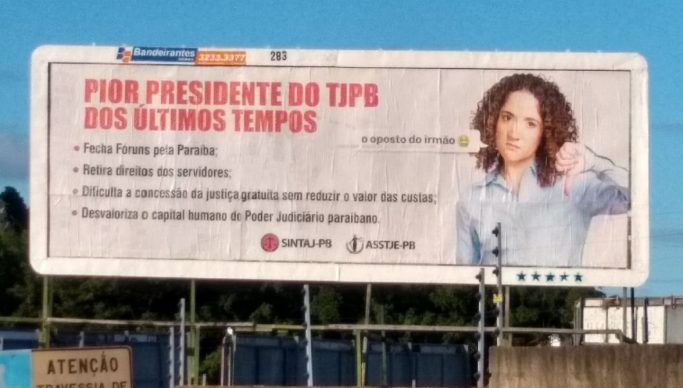 ‘PIOR PRESIDENTE DO TJPB DOS ÚLTIMOS TEMPOS’: Servidores do judiciário colocam outdoors em João Pessoa e Campina Grande para protestar contra retirada de direitos