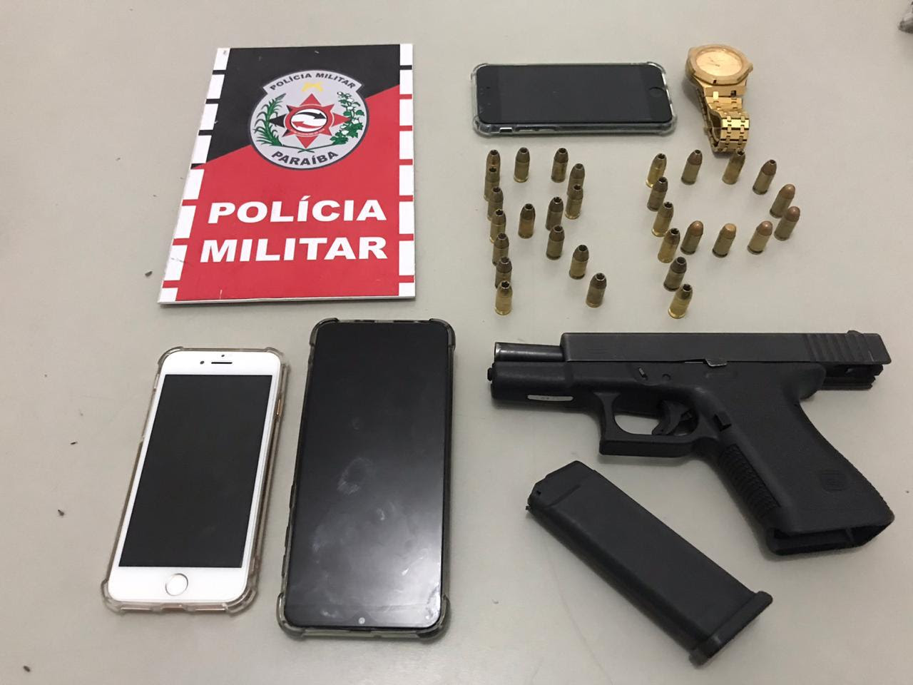 A Polícia Militar começou a semana com apreensão de arma de fogo no município de Patos, no Sertão do estado. Dessa vez, policiais do 3º Batalhão apreenderam uma pistola calibre 380 e 30 munições, na noite dessa segunda-feira (04), durante ações preventivas.
