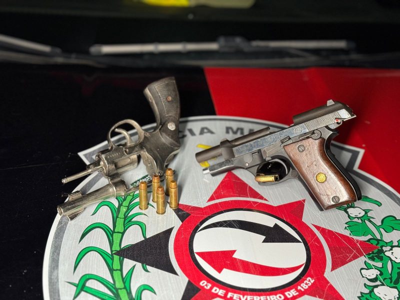 Mais tarde, já na madrugada de sábado, outros três foram presos com duas arma, sendo um revólver e uma pistola (foto acima), no Jardim Gama. Desses, um já usava tornozeleira eletrônica, o que demonstra o alto grau de reincidência dos infratores e a gravidade das ações delituosas.