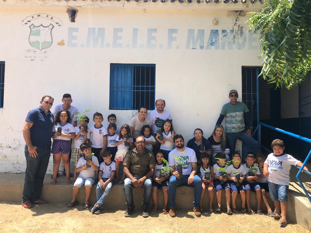 O prefeito de São Bento, Jarques Lúcio, participou na quarta-feira (10) do plantio de mudas de árvores na Escola Municipal Manuel Cesário de Araújo, localizada no Sítio Riachão.