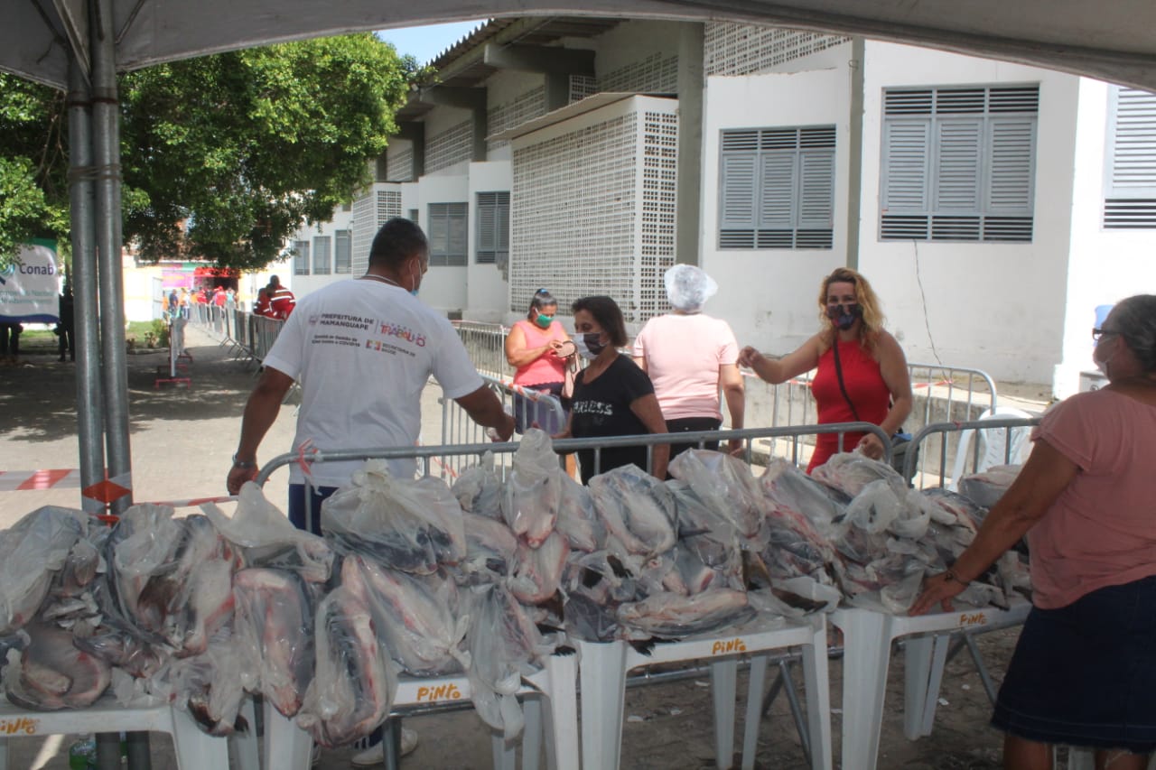 Mais de mil e duzentas famílias foram beneficiadas com as entregas de 3.000kg (três mil quilos) de peixes e aproximadamente 17.000kg (dezessete mil quilos) de produtos da agricultura familiar com macaxeira, batata doce, feijão verde, acerola, laranja, jaca, mamão, jerimum e coco.