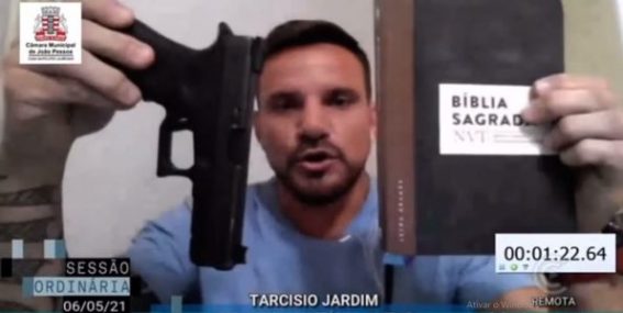 PREGADOR PISTOLEIRO: Vereador Tarcísio Jardim exibe bíblia e arma durante sessão remota da CMJP