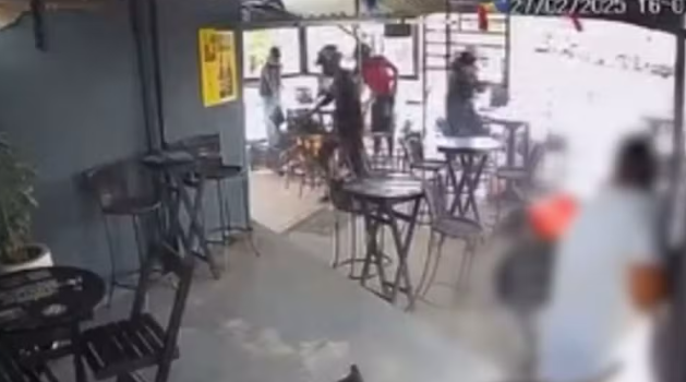 Eles vão direto à vítima, o cercam e atiram mesmo com o homem já caído. As demais pessoas que estão no bar corre e tentam se proteger. Logo depois do crime, os homens fogem.