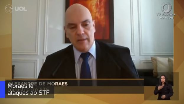 “Eu peço redobrada atenção para algumas frases duras que vou ler, de algumas agressões e ofensas feitas aos ministros do STF para que se pare de uma vez por todas de se fazer confusões de críticas, por mais ácidas que sejam, que devem existir e continuar, com agressões, ameaças e coações”, afirmou Moraes, antes de começar a ler ofensas contra a corte.