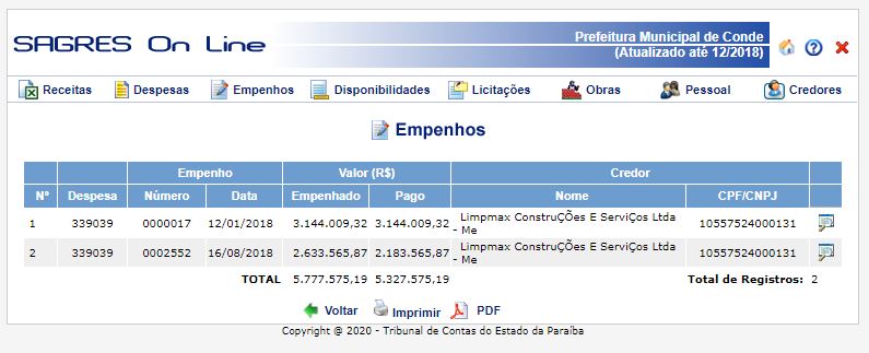 De acordo com o sistema de transparência do Tribunal de Contas da Paraíba, o sagres, a gestão de Márcia Lucena já pagou, entre 2017 e 2019, R$ 14 milhões à empresa que está sendo acusada de superfaturar contratos públicos pela operação Calvário. Veja: