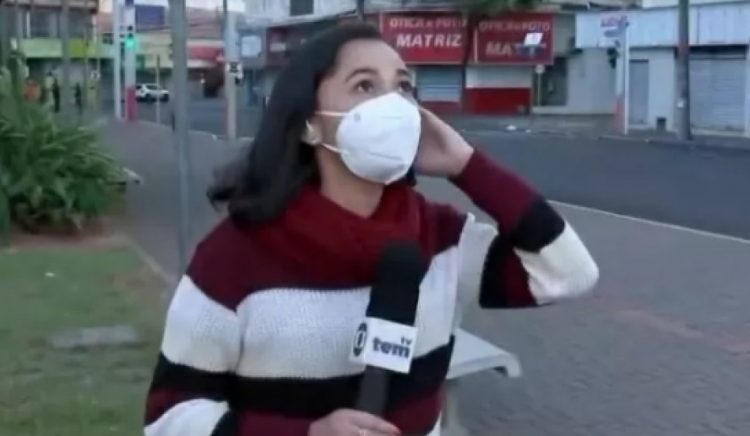 Tratava-se da jornalista Thaís Gomes, que se deparou com um barulho muito grande enquanto transmitia informações ao vivo para o Bom Dia São Paulo na manhã desta terça-feira (31).