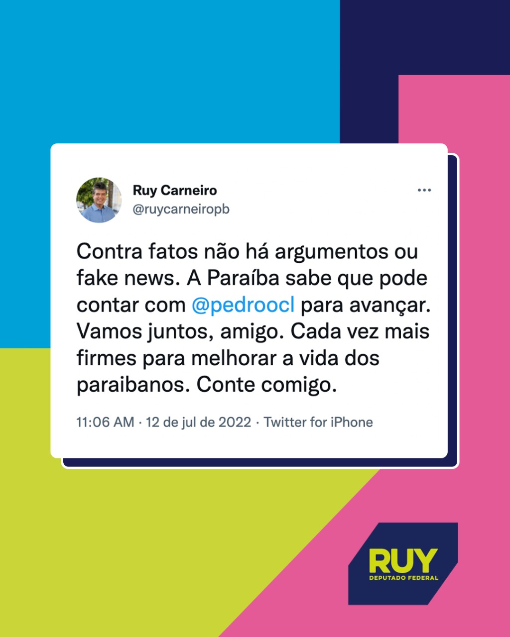 “A candidatura de Pedro está firme e forte. Por onde nós andamos, vemos o desejo das pessoas por uma mudança urgente. Eu acho que essas especulações surgiram justamente da preocupação da situação com esse cenário e os boatos só confirmam o desespero da base governista. Pedro chegou para mudar de verdade. A Paraíba precisa mudar e Pedro sabe que pode contar comigo”, afirmou o parlamentar.