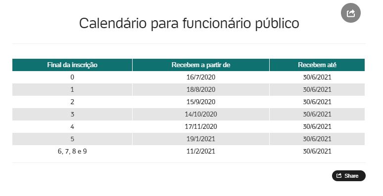 Calendário de pagamento atualizado