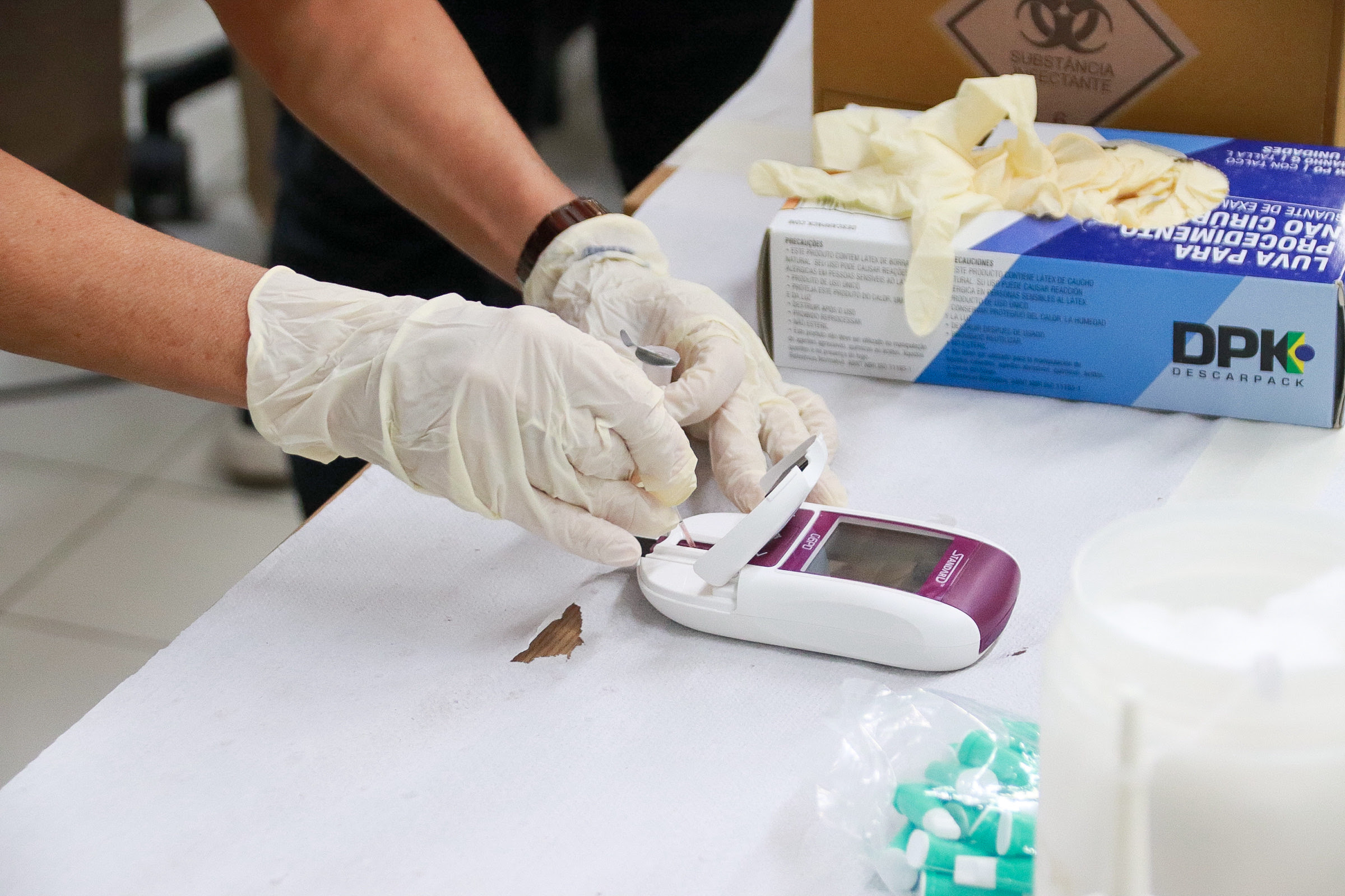 Durante o treinamento, os participantes realizaram a parte prática do teste de G6PD, aprenderam a interpretar os resultados associados aos níveis de hemoglobina e revisaram o algoritmo terapêutico recomendado pelo Ministério da Saúde. Além disso, foram atualizadas informações sobre as manifestações clínicas e laboratoriais indicativas de malária grave e complicada, como anemia grave, insuficiência renal, hipoglicemia e alterações neurológicas, reforçando critérios de encaminhamento e manejo oportuno.