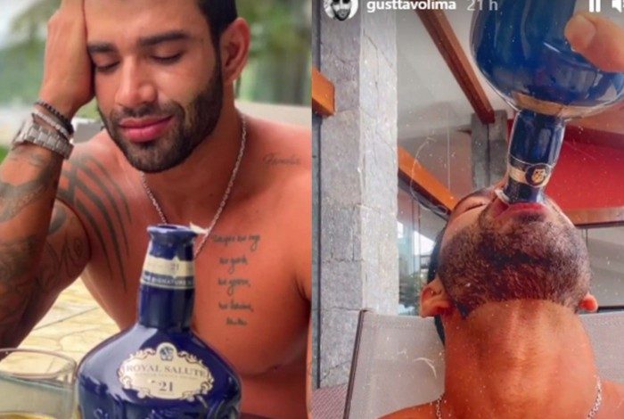 Nos vídeos, Gusttavo Lima começou bebendo o uísque em um copo, mas pouco tempo depois a situação já era outra. O cantor estava se acabando e tomando tudo no gargalo. No final, ele se filmou virando o recipiente para baixo, mostrando que tinha acabado com tudo.