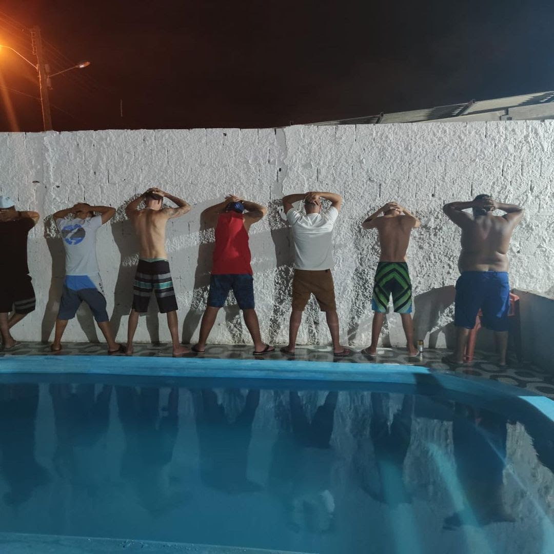 A Polícia Militar encerrou uma festa clandestina que reunia aproximadamente 50 pessoas, a maioria sem máscara, na noite desse domingo (14). O flagrante aconteceu em uma casa na Praia do Sol, Zona Sul de João Pessoa. Três homens foram presos em flagrante. Uma pistola calibre 9 milímetros foi apreendida, assim como o carro que tocava som no evento.
