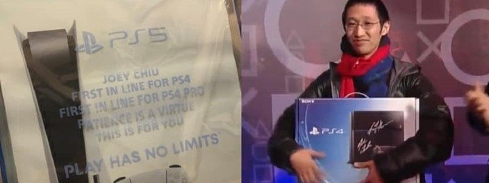 Gente como a gente, Joey Chiu, chinês nascido nos EUA e com nome de japonês —como a própria descrição do Twitter diz — foi o primeiro da fila a comprar o PS4 sete anos atrás. Como forma de agradecer sua devoção, a Sony lhe enviou um PS5 de presente, já que o rapaz não poderia fazer o mesmo desta vez por conta da pandemia de Coronavírus.