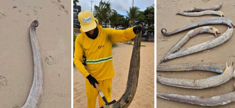 Mais de 100 moreias foram encontradas mortas nas praias de Cabo Branco, Manaíra e Jardim Oceania, em João Pessoa, na manhã desta quinta-feira (26). Os primeiros registros foram feitos por banhistas, que avistaram os animais boiando no mar e espalhados pela areia. A situação chamou a atenção da população local e mobilizou as autoridades.