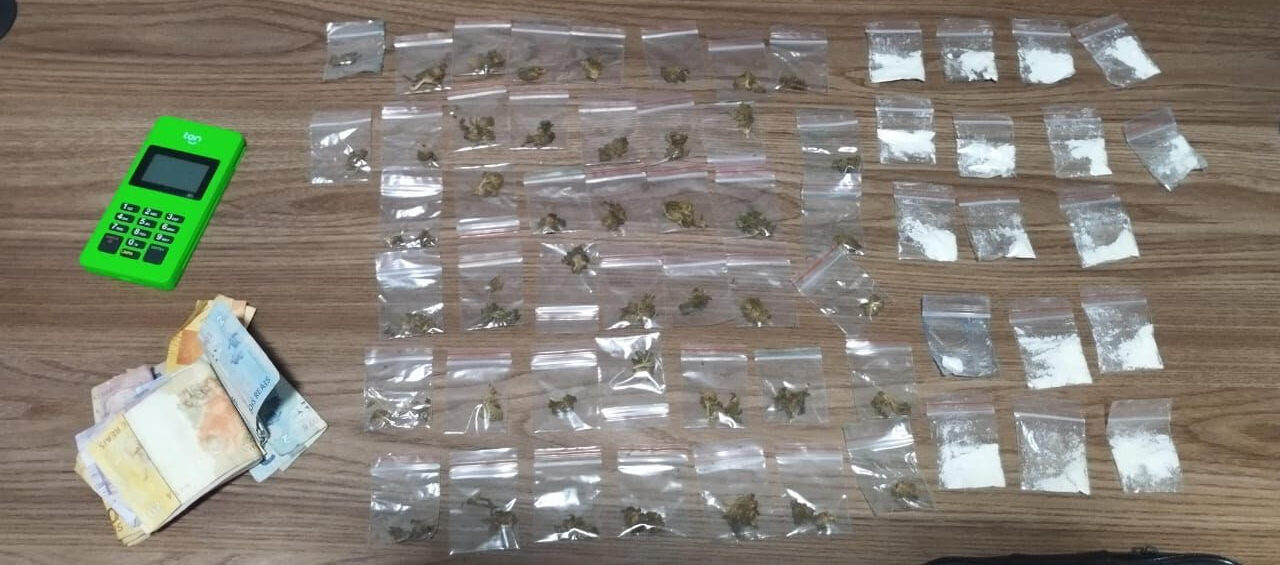 A Polícia Militar prendeu em flagrante, nesse domingo (4), um jovem de 19 anos suspeito de tráfico de cocaína e maconha, durante o desfile do bloco Virgens de Tambaú, em João Pessoa. A prisão foi registrada perto da área onde ficam os banheiros químicos. Com ele, foram apreendidas 65 porções de drogas, dinheiro em espécie e uma maquineta usada para receber outras formas de pagamento.