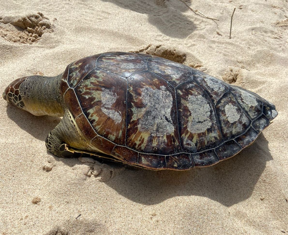 Uma tartaruga foi achada morta na Praia do Macaco, em Cabedelo, no último domingo (20). A causa da morte não é conhecida.