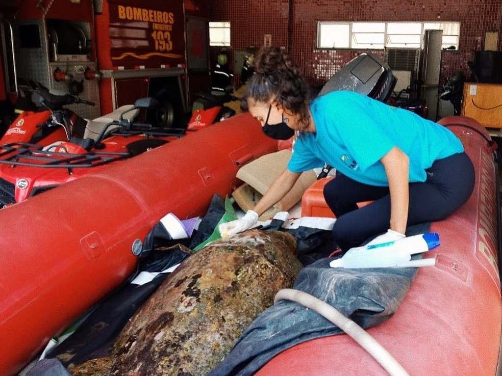 “Quando o animal encalha já está bastante debilitado, a gente tem que fazer um resgate o mais rápido possível para tentar garantir a sobrevivência desse animal, que já está ameaçado de extinção. O que a gente consegue salvar, faz uma diferença gigantesca”, ressalta Ruama Catarina.