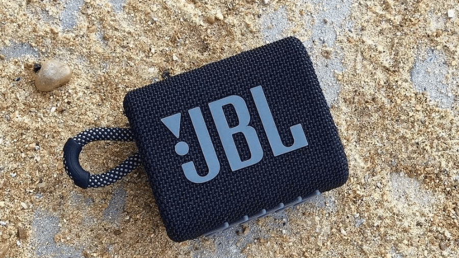 - Ele pluga uma caixinha JBL, modelo Go3 (a linha mais barata da empresa), a um cabo puxado da parte de trás do farol do carro;