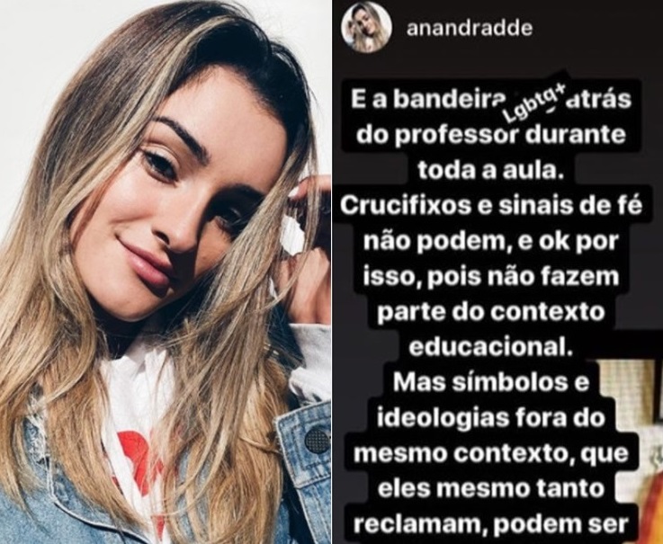 Ana Paula alega “liberdade de expressão” e diz que sofre preconceito por ser cristã e acusa o professor de “ideologia e doutrinação”: “Bem-vindo às instituições de ensino onde eles podem militar por absolutamente tudo e você tem que se calar. Pense bem onde vai colocar seu filho”, diz um story compartilhado por ela.