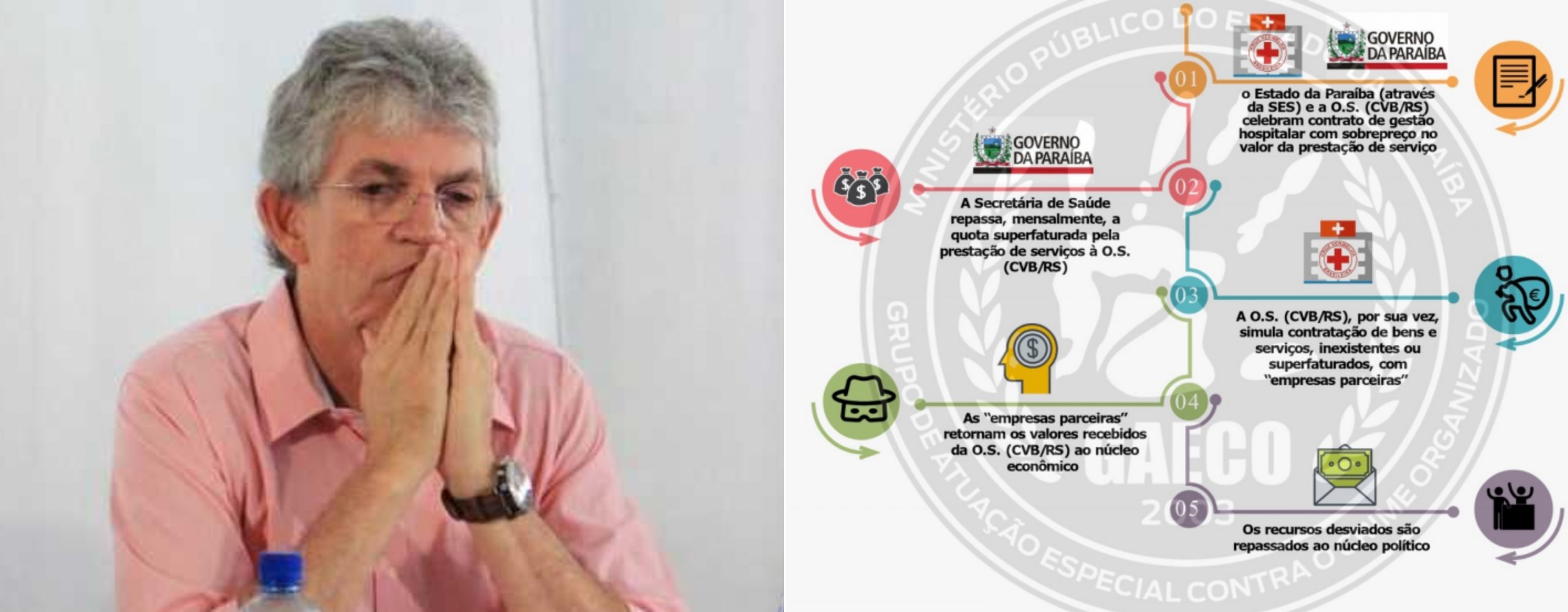 “O grupo liderado por Ricardo Coutinho foi pródigo na criação de mecanismos e condutas que pudessem render aos seus componentes a apropriação de verbas públicas, praticando fraudes das mais diversos matizes, sobretudo por meio da utilização de organizações sociais e a adoção massiva de métodos fraudulentos de contratação de fornecedores, seja por inexigibilidade de licitação, seja por processos licitatórios viciados, sem olvidar da aquisição superfaturada de produtos e serviços e da lavagem de dinheiro; tudo inserido no seio de um silêncio obsequioso dos órgãos de persecução e controle estaduais. Os episódios criminosos em específico estão sendo postos em investigações e denúncias autônomas, como a presente que versa sobre a utilização perniciosa do Lifesa”, diz a denúncia.