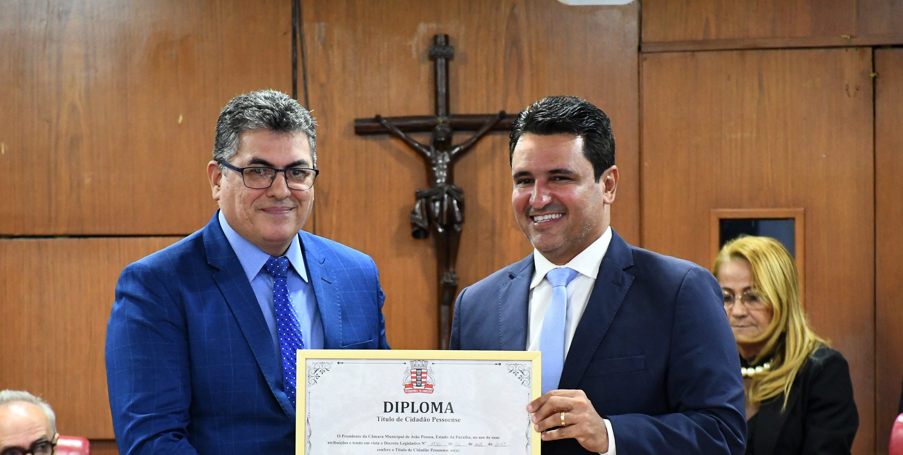 A Câmara Municipal de João Pessoa (CMJP) realizou, na tarde desta terça-feira (02), sessão solene para entrega do Título de Cidadão Pessoense ao vereador Valdir Trindade (Republicanos). A solenidade foi prestigiada pelo prefeito de João Pessoa, Cícero Lucena (MDB), além de amigos e familiares do homenageado.