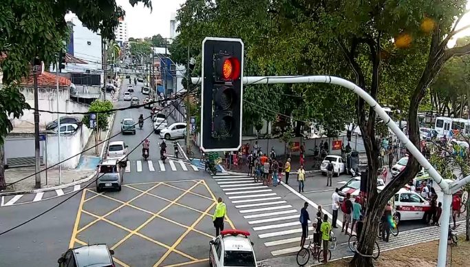 O trânsito teve de ser bloqueado na avenida Duarte da Silveira nesta segunda-feira (16) em decorrência da ação da Polícia Militar da Paraíba que perseguia um carro com um trio de suspeitos de terem assaltado uma loja de celulares.