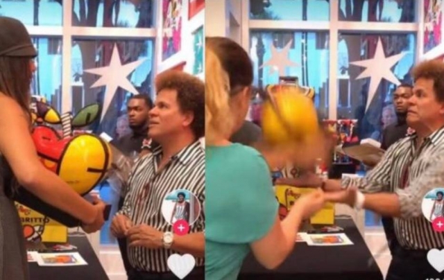 Um vídeo de uma mulher quebrando uma obra de Romero Britto na frente do artista plástico brasileiro, em seu próprio ateliê, em Miami, nos Estados Unidos, viralizou nas redes sociais, na madrugada desta sexta-feira, 14.